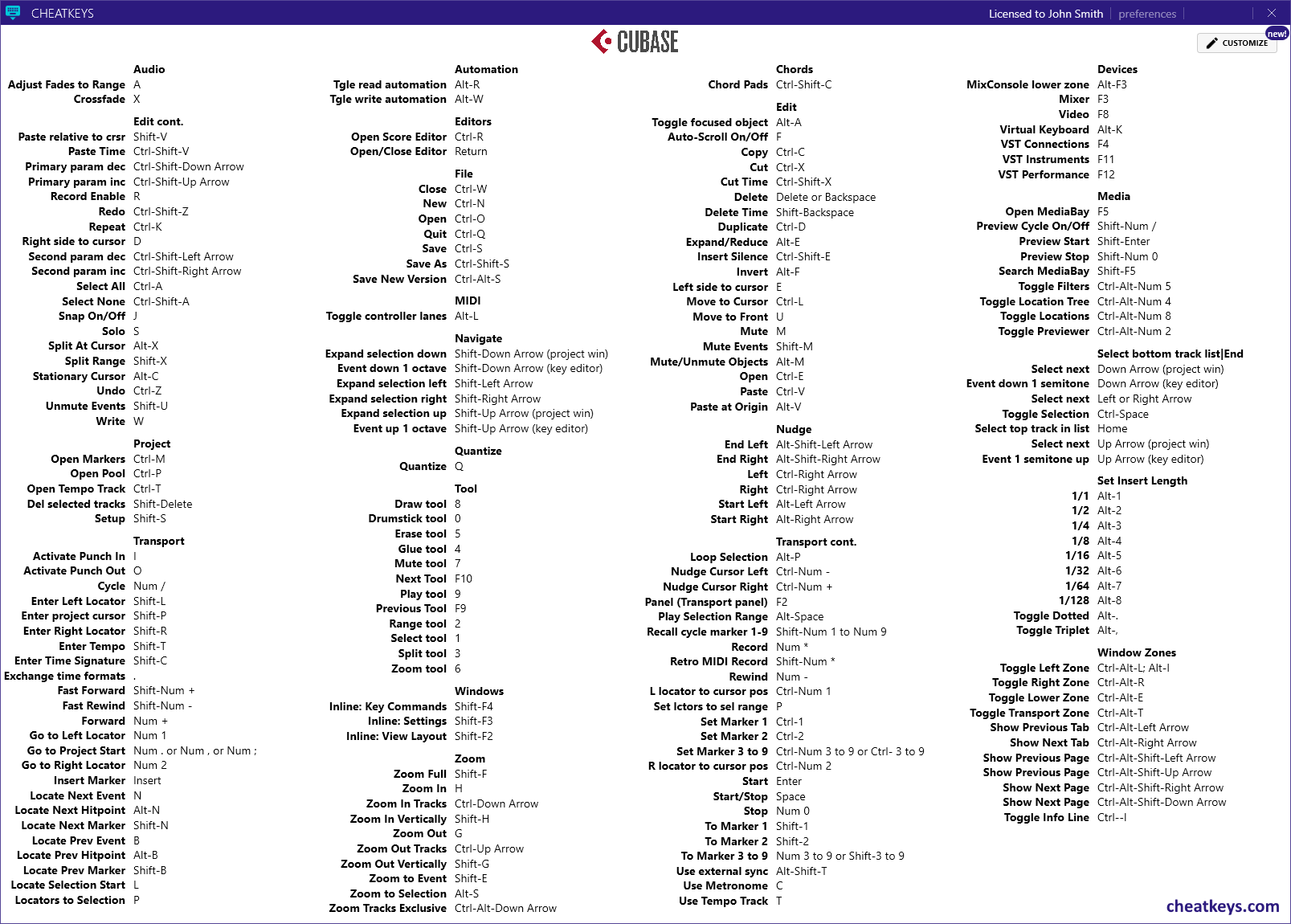 < Cubase 단축키(Shoutcut key) >