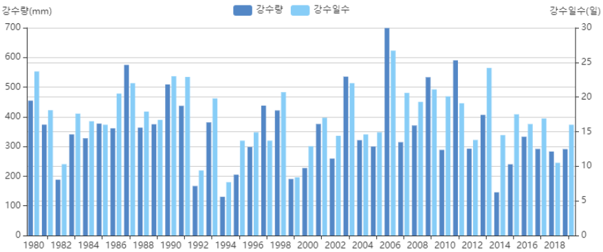 * 전국 강수량, 강수일수