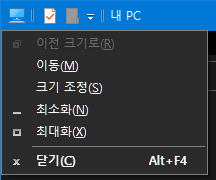- Alt + Space 후 창의 좌상에 나타나는 메뉴 선택