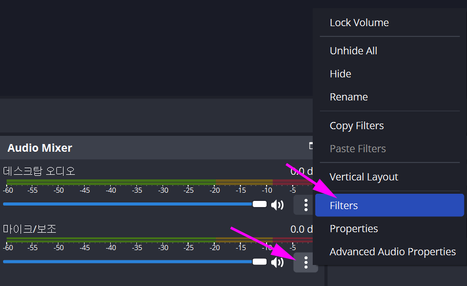마이크 우측 메뉴 -> 필터