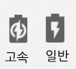 - 고속 충전 모드 : 번개에 동그라미 (예외도 많음, 갤럭시 노트 8...)