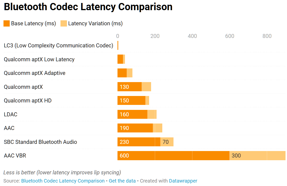 - 지연시간 비교(Bluetooth Codec Latency Comparison)