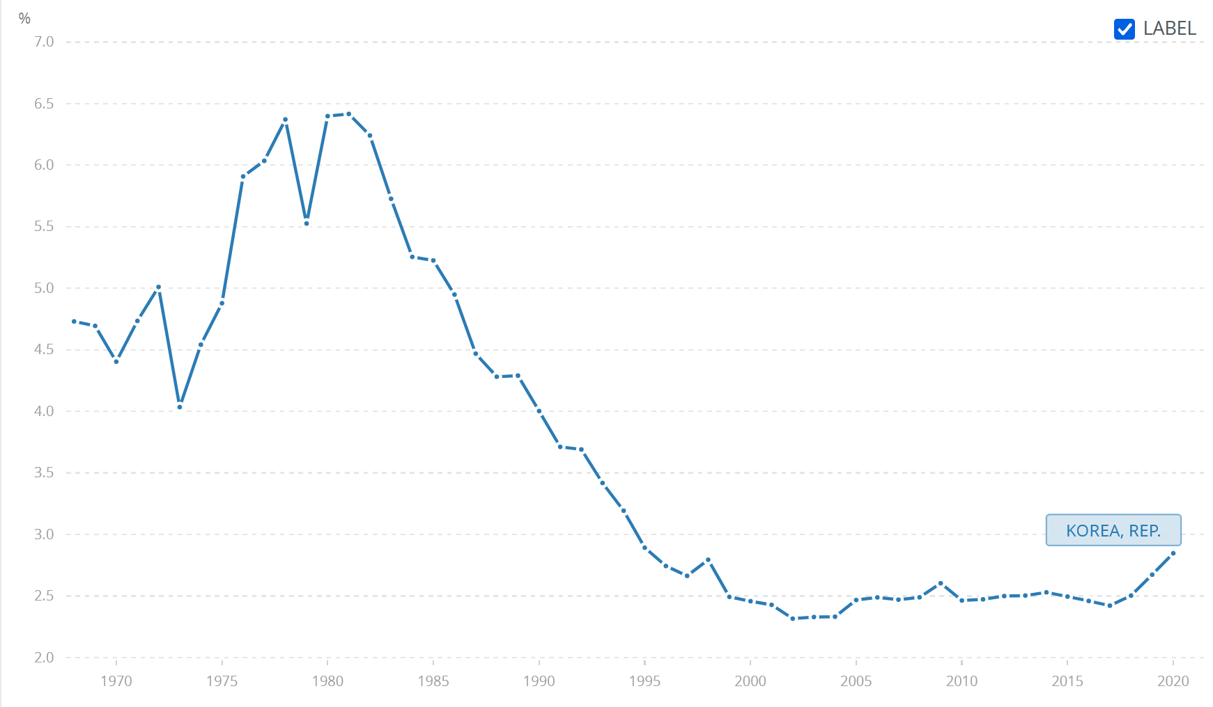 https://data.worldbank.org/indicator/MS.MIL.XPND.GD.ZS?end=2020&locations=KR-KP&start=1968&view=chart