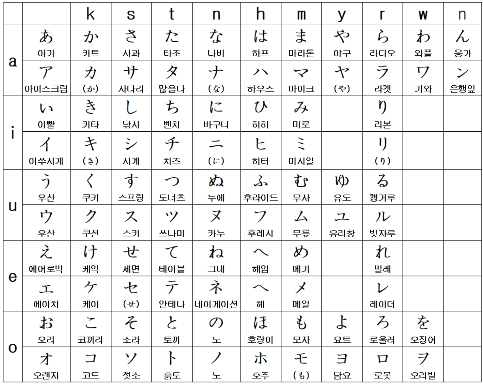 * 히라가나/가타카나 정리표