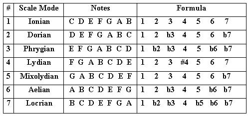 | C 에올리안 | Eb | Cm | C | D | Eb | F | G | Ab | Bb | C | 2-3, 5-6 |