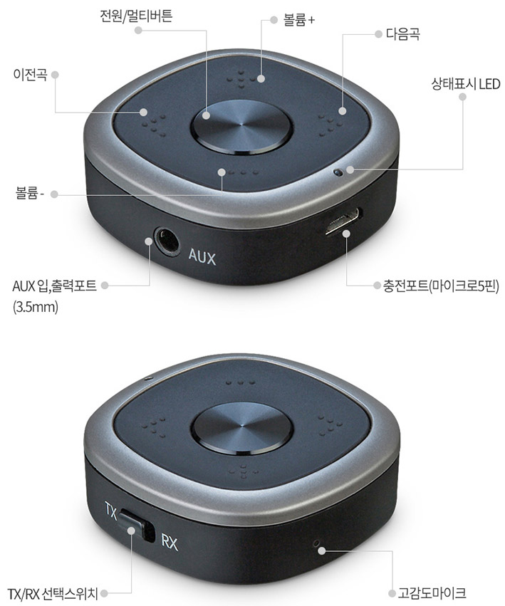 RX (수신)로 놓고, 전원 버튼(or 페어링 버튼) 3초 이상 누르면 소리나면서 LED 깜빡임