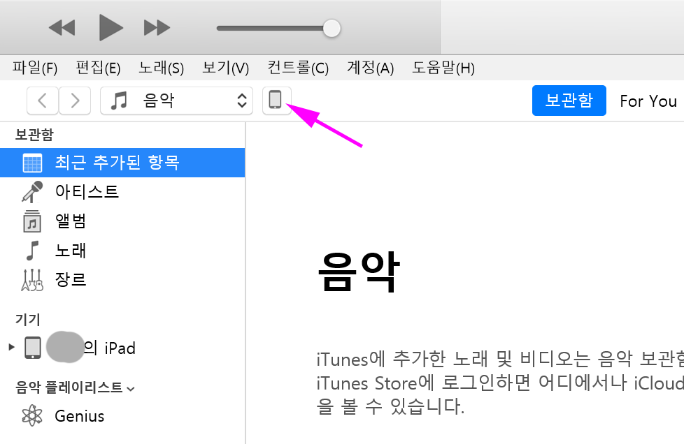 * PC 와 iOS 기기를 USB로 연결하여 동기화 한다.