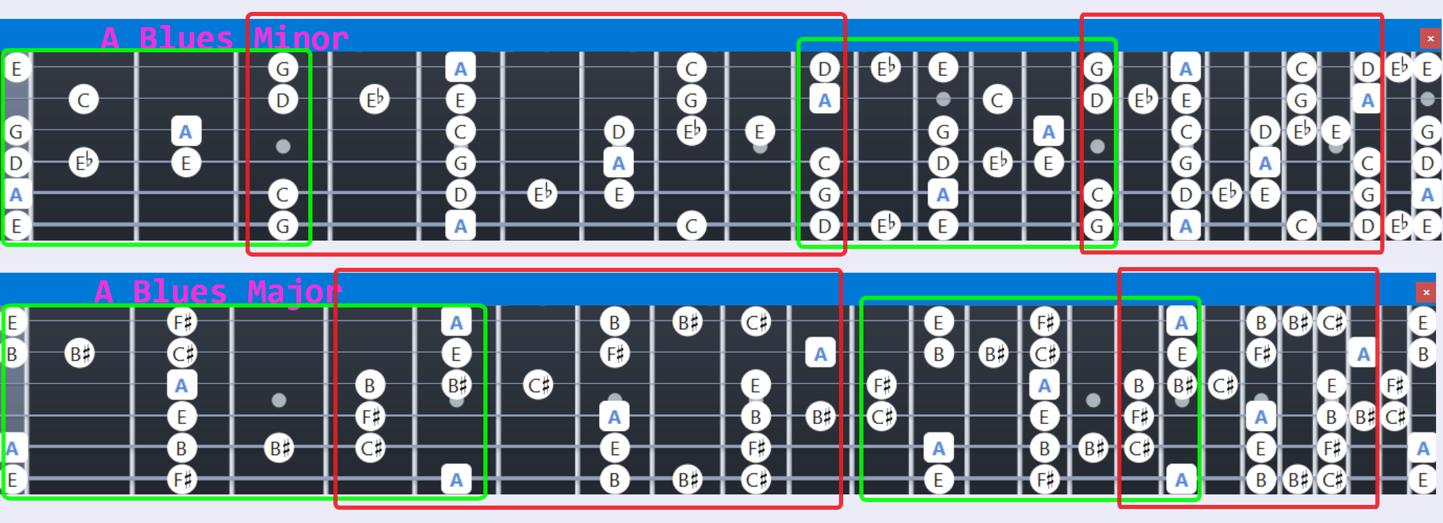 - A 메이저 블루스 (F# 마이너 블루스 와 동일)