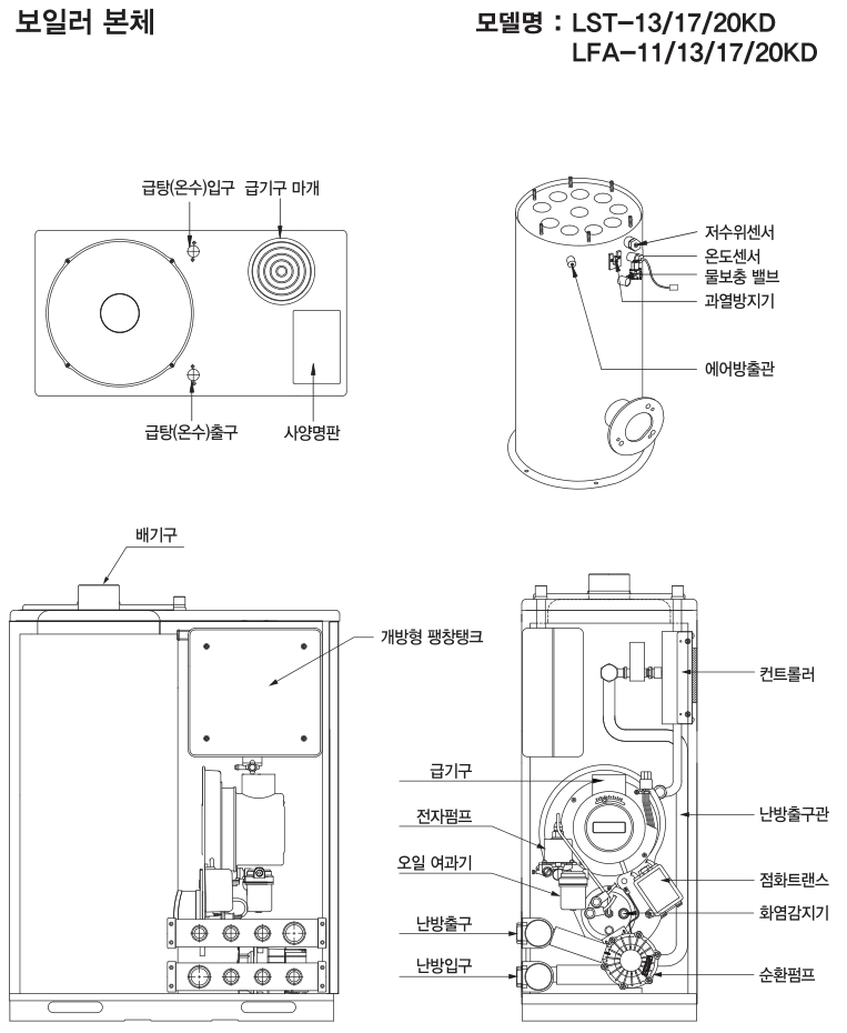 LST-17KD : 119.0㎡(35평형) (86㎡ 26평) / 난방출력 : 17,000kcal / 연료소비량: 2.15L