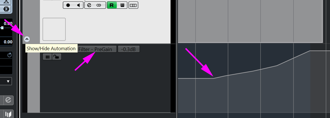 Cubase 프로그램 Automation 기능의 PreGain 으로 조정